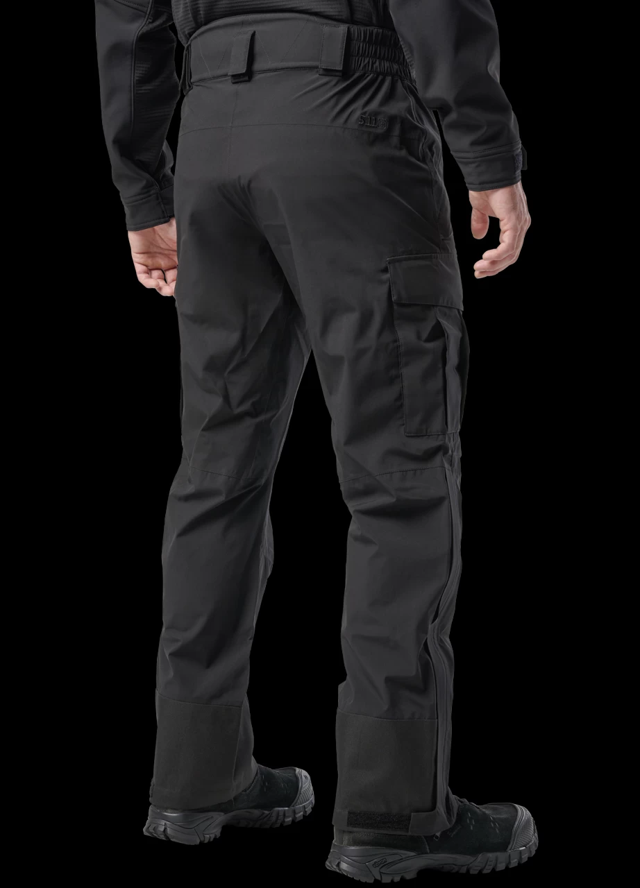 Lightweight and ready for the weather, the 5.11 Force Rain pants has been purpose-built to keep you dry when the rain is pouring. The trouser is EN 343 certified and features a 15K/15K waterproof/breathable Tac Dry membrane with BBP protection. Built with a 2.5L lightweight polyester plain weave and fully seam sealed. The trouser has a shaped waistband with high back for added coverage. Low-profile cargo pockets, right rear zippered pocket and zippered pass-through front hand pockets provide storage. Lower legs feature zippered openings with a storm flap and loop/hook adjustment tab to keep the weather at bay as well as reinforced rear hem for durability.