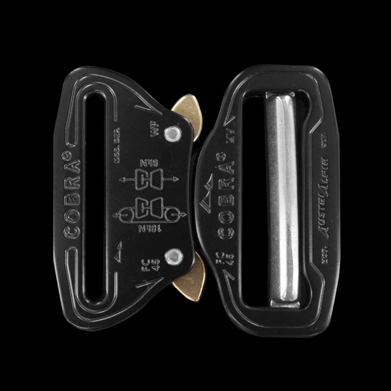 The AustriAlpin COBRA Pro Style 45mm Black is a buckle that meets the highest safety requirements. When relieved the buckle can only be through pressing both clips at the same time. The locking mechanism makes one-sided locking of the buckle nearly impossible and is confirmed by a distinct ‘clicking’ sound.