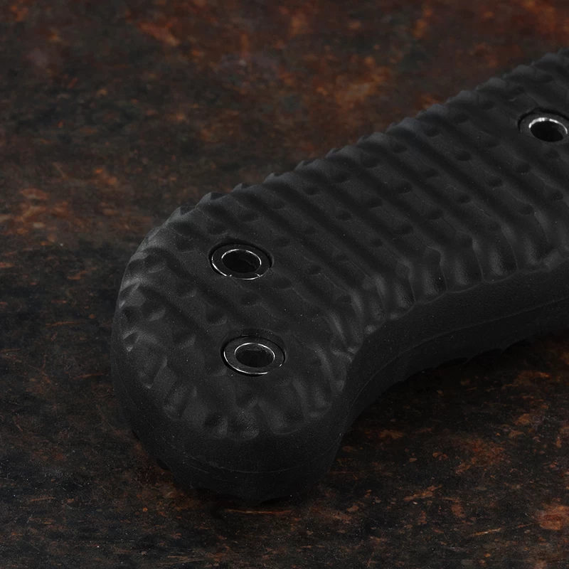 The Kuk has a full-tang Kukri inspired recurve blade made from 65 Mn Carbon Steel with a black powdercoat finish. The secure grip double injection moulded handle feels secure in the hand, and the whole is set off with a nylon sheath.