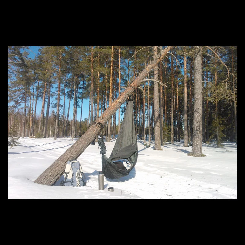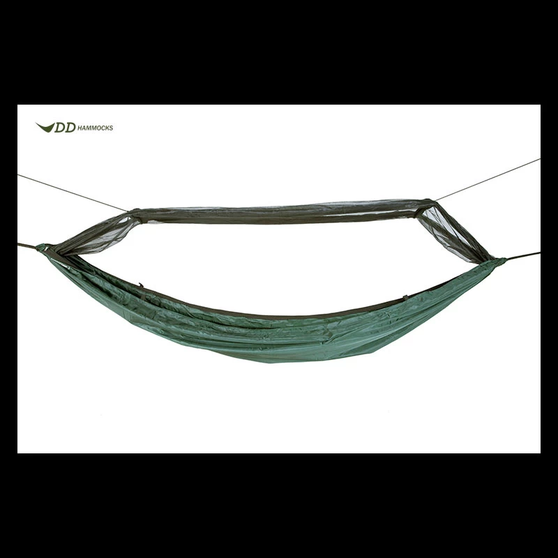 The double-layered DD Travel Hammock/Bivi has a built on mosquito net and a waterproof floor. With the webbing pre-fitted and spreader poles/elastic included to raise the net, the Travel Hammock is a versatile system suitable for users with any level of hammock camping experience.