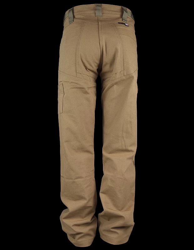 The Kitanica Brush Pant is a heavy duty work, outdoor trouser made of 100% duck cotton fabric. The seven belt loop waist and waist fit adjustment cinches make these some of the best fitting most comfortable work pants on the market. With belt loops made of mil-spec nylon webbing, they also accommodate a wider variety of belts. They have double layer reinforcement on the knees and backside.