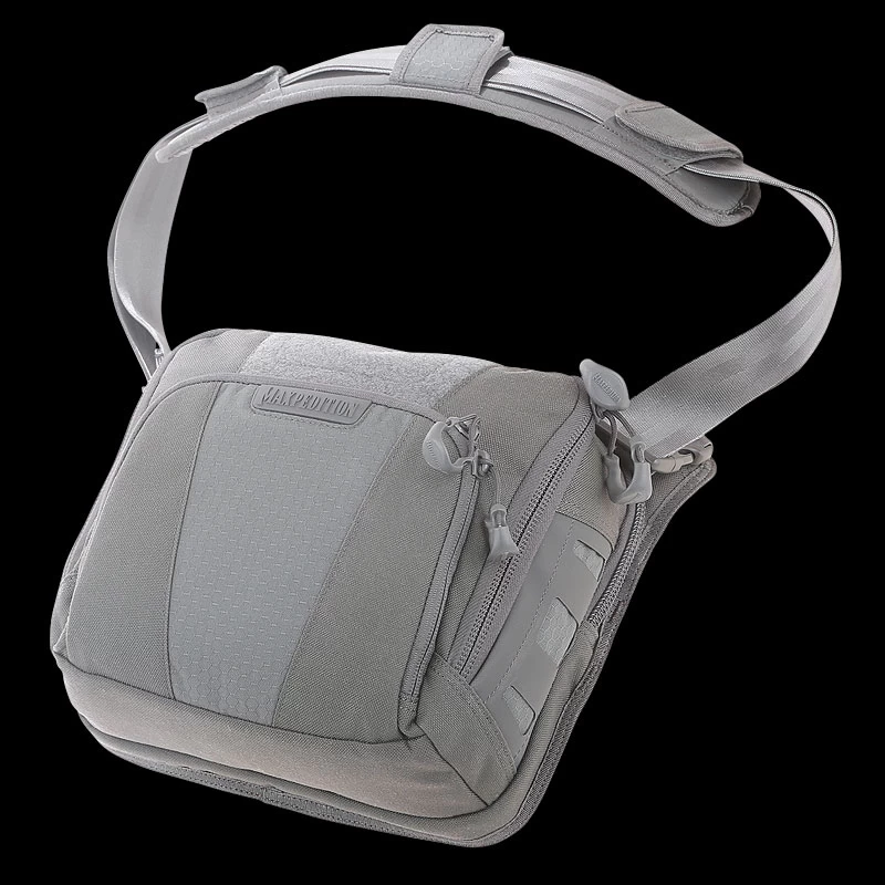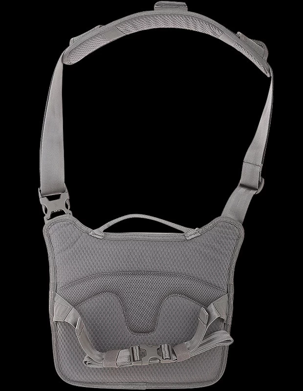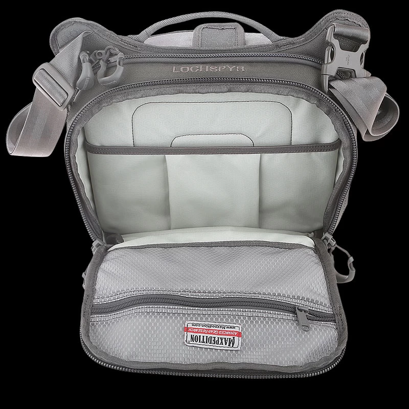 The Maxpedition LOCHSPYR (pronounced “LOCK-SPIRE”) is a crossbody shoulder bag optimized for carry. The rear CCW compartment is fully loop-lined and has an 16 inch U-shape zipper opening. The main compartment has a padded pocket sized to fit most tablets. There is an adjustable reinforced seatbelt webbing shoulder strap with quick release buckle and padded shoulder pad.