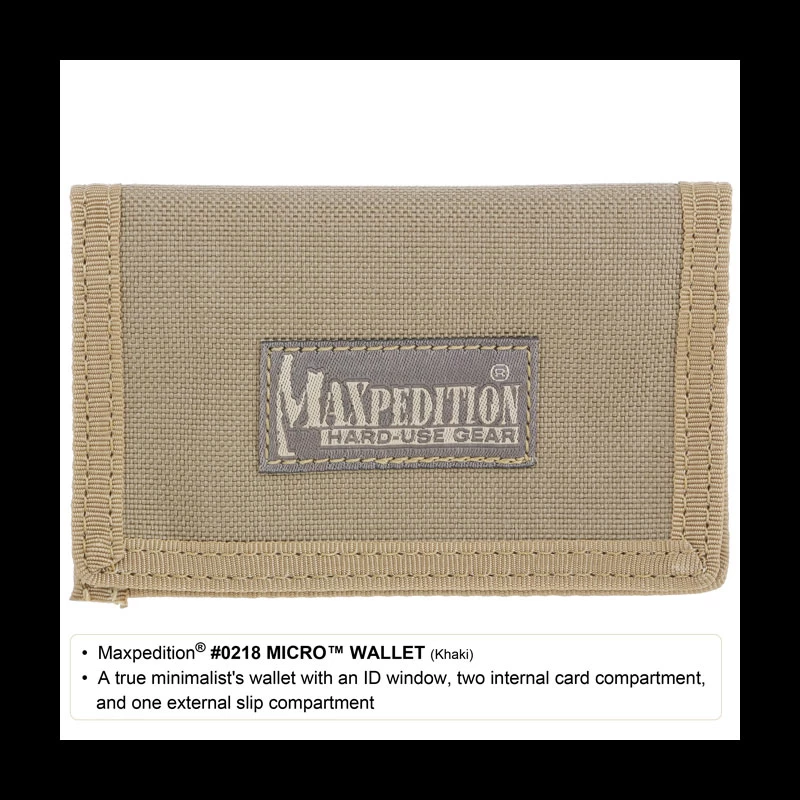 The Maxpedition Micro Wallet is truly a minimalist’s wallet with an ID window, two internal card compartments, and one external slip compartment. Perfect for your drivers license, some credit cards, a few notes, two coins (for a phone call), and a spare key. Some call this the “bikini” of wallets.