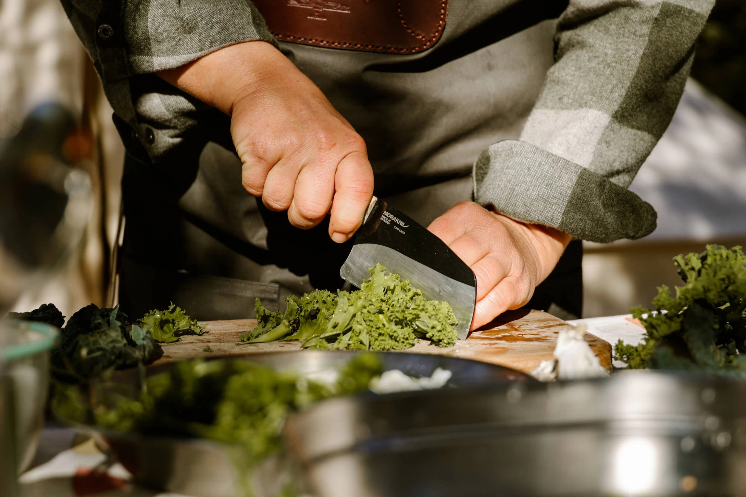 The Mora Rombo is a handmade full tang knife optimised for outdoor cooking. The ergonomic handle of carefully selected bright ash wood from European FSC certified forests, and the large black knife blade made of recycled Swedish stainless steel, with its distinctive food grind, allow you to improve your cooking skills in the great outdoors. Season your next meal with the forest pantry and prepping your food will forever be a culinary experience.