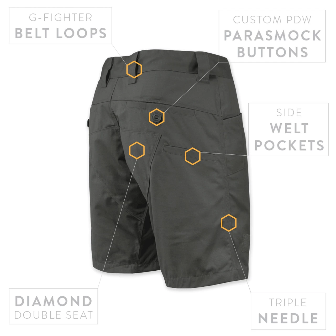 Like most of the Prometheus designs, they use industrial grade construction methods such as heavy duty nylon thread, triple needle stitching on major seams, and more bar-tacks to reinforce stress points than any other short in its class. The cut and silhouette is a tailored regular fit in keeping with its understated and streamlined appearance, yet a fully capable intent. The Raider Field Short NYCO is equally at home in the field, behind the wheel of your 4×4, jungle trekking, adventure travel, or a summer getaway at the cabin.