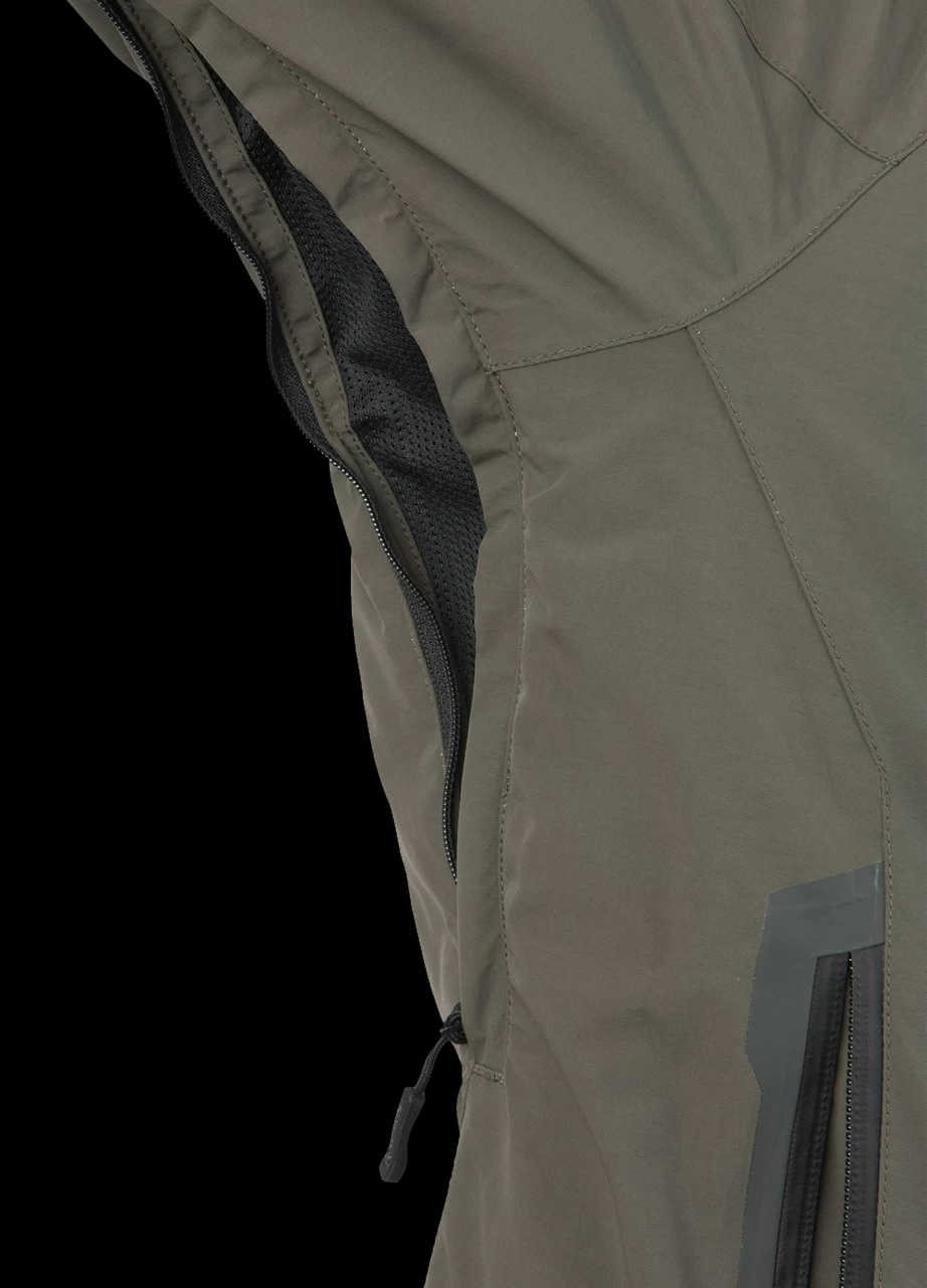 - Underarm ventilation zips, with mesh inner