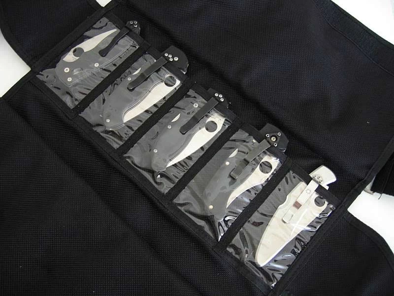 - Looking for a way to store and carry multiple knives or even your entire collection? The SP1 SpyderPac provides secure scratch-proof storage and portability for up to 30 folding knives. Each pocket is 11.4 x 6.4cm. Folded size 20 x 63cm. Size open fully 90 x 63cm