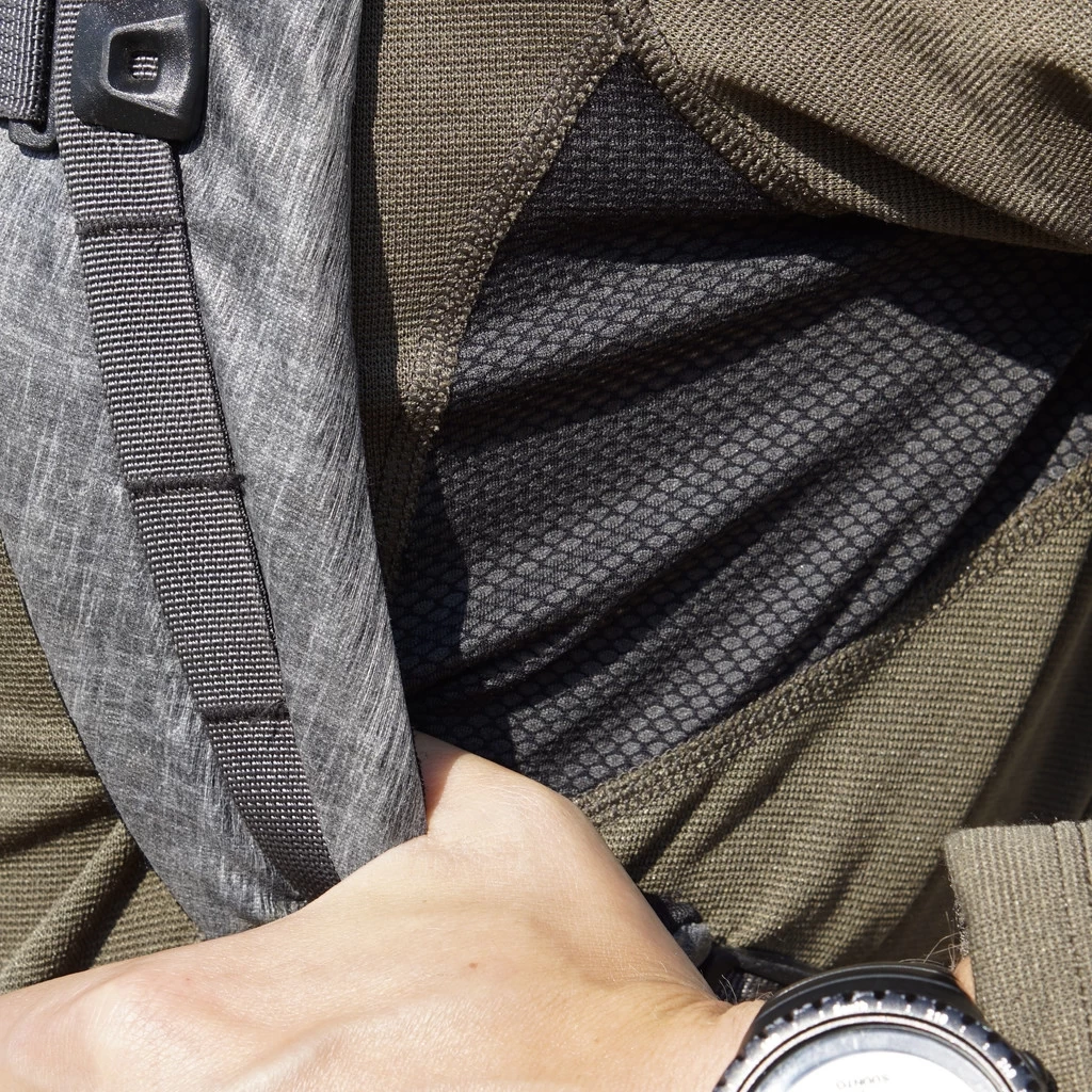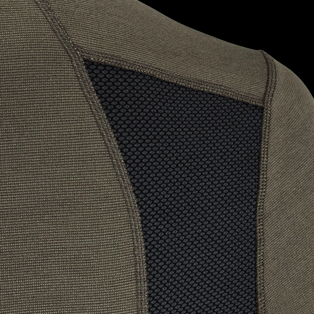 Superior wicking is provided by Polartec® Power Dry™. By utilizing a bi-component knit to provide mechanical wicking instead of depending on chemical treatments, Power Dry is able to maintain its performance over the lifetime of the fabric. Underarm and back panels of Polartec® Delta™ enhances the body’s natural cooling mechanism and provides airflow while reducing friction against the skin.