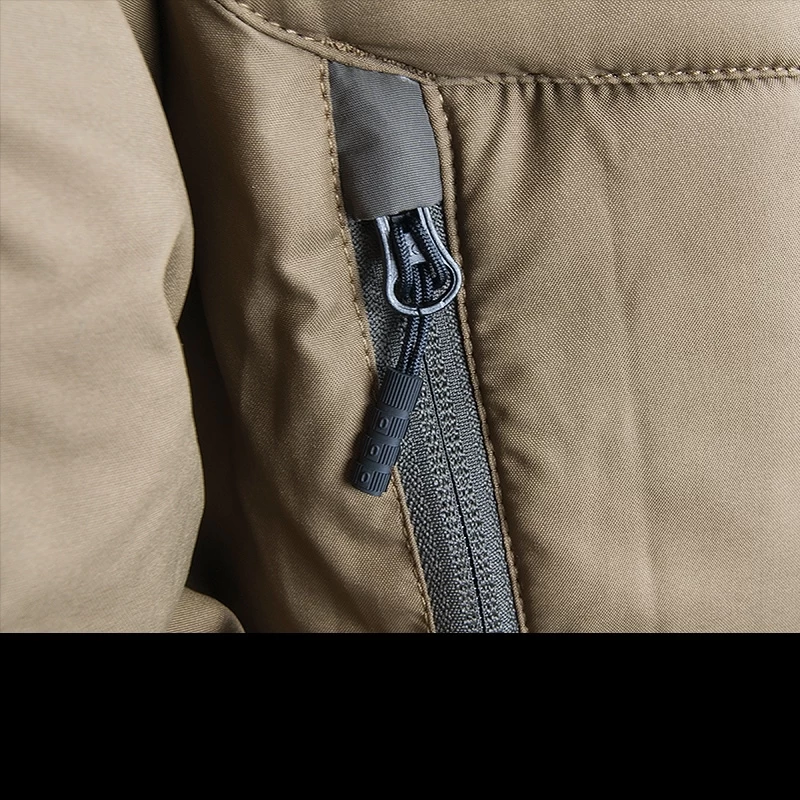 Dual waist-belt-compatible hand pockets, bicep pockets on both arms, and a single interior chest pocket offer secure storage for essential gear. A single-entry hunter’s pocket keeps gloves and hats close at hand, and also serves as a convenient stuff sack. To engage, turn the pocket inside out and stuff the jacket into the reversed pocket.