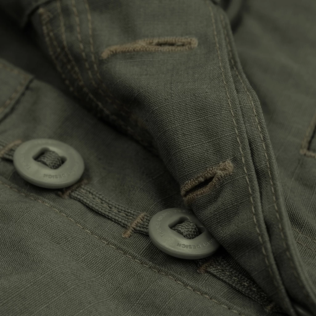 - Ruggedness: Bar tack reinforcements at critical stress points and triple needle stitching on the in- and outseam increase durability.