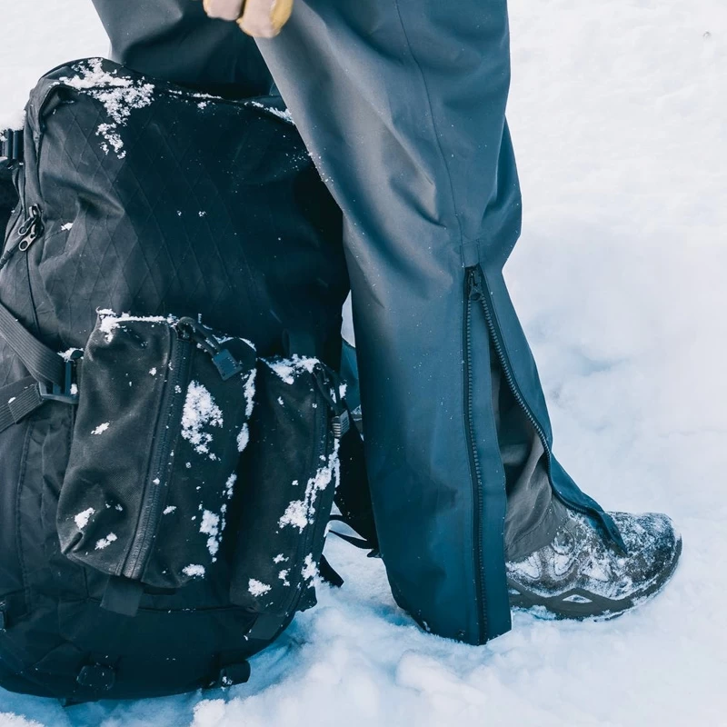 Two zippered thigh pockets provide accessible and ergonomic storage even when seated. Generous boot entry zippers helps you don them as overpants quickly when inclement weather strikes. Dual-position cuffs accommodate heavy boots or blousing inside gaiters, and an integrated no-bulk belt helps tailor the fit to your layers as the mercury shifts.