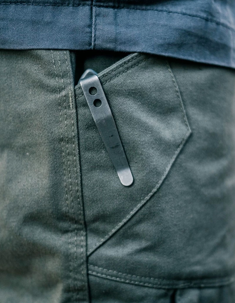 Concealed thigh zippers access flat, gusseted cargo pockets perfect for cell phones, passports, notebooks, and card sleeves. For extra security, each pocket contains a bartacked webbing rail for dummy-cording critical gear. An additional hidden pocket provides secure storage for an included repair button and other mission essentials.