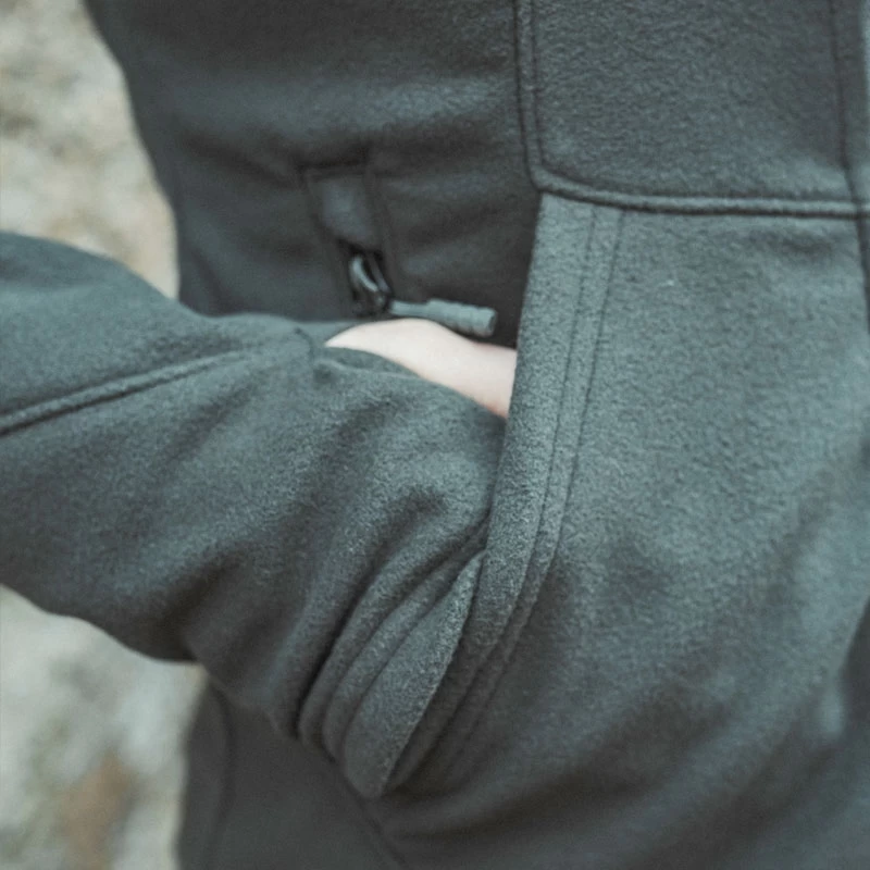 - Polartec Wind Pro, 100% Polyester (288g/m² / 8.5 oz/yd²), DWR Finish (Durable Water Repellent)